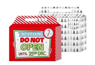 Each carton contains an assortment of two designs, snowflake and candy cane print, with each box having a matching gift tag.