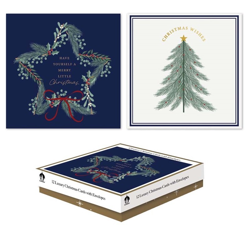 Christmas Cards 12 Square Boxed Wreath / Tree - Click Image to Close